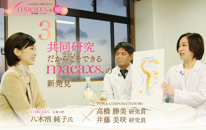 帝塚山学院大学で小川先生と一緒に、MACAXS®の効能を日々研究している井藤美咲氏と高橋勝美氏にインタビュー。研究員の業務と役割についてお話しいただきました。